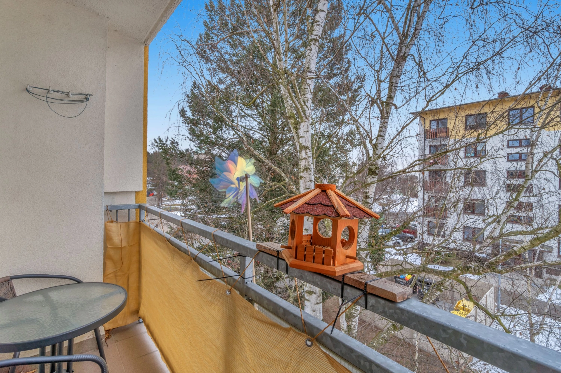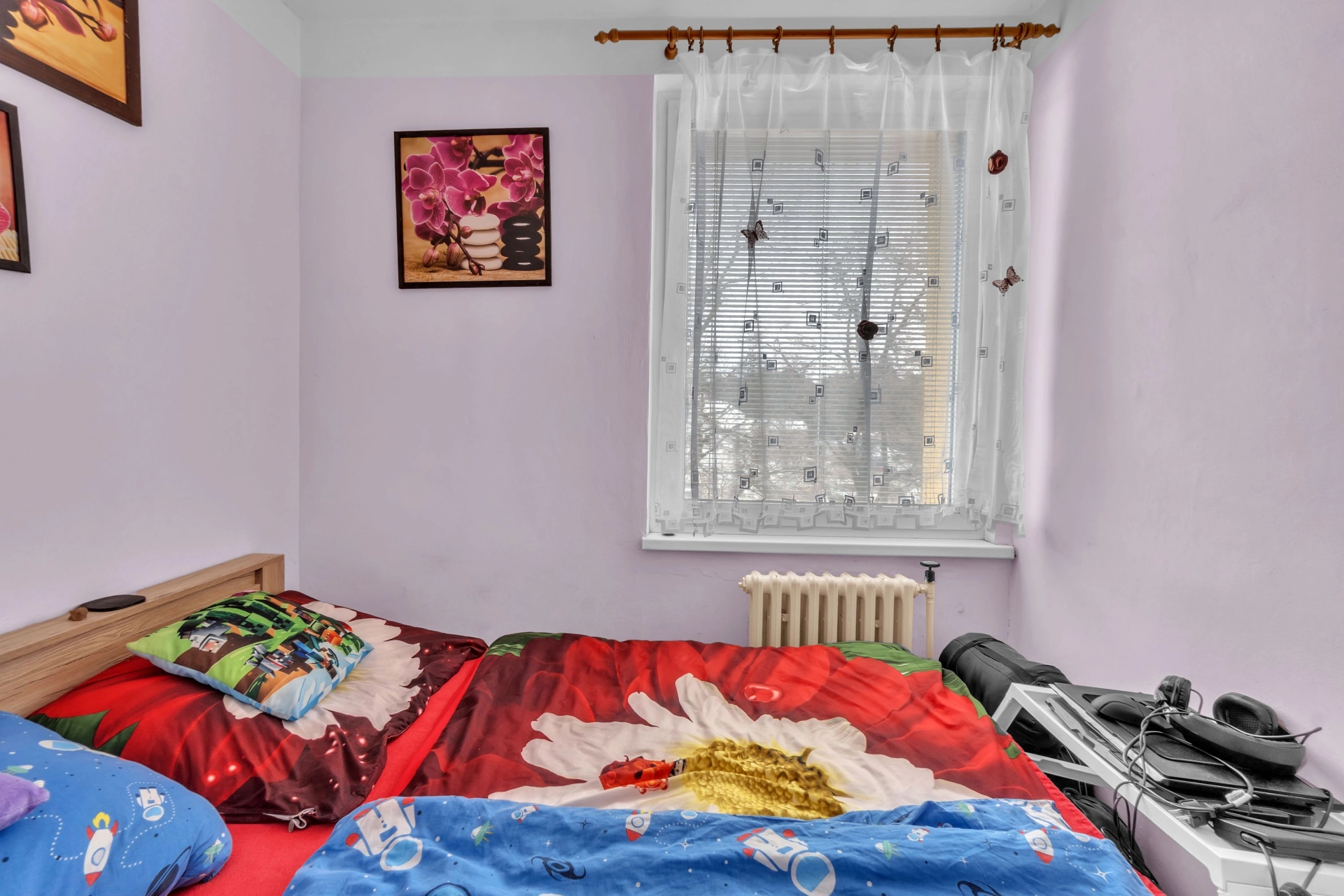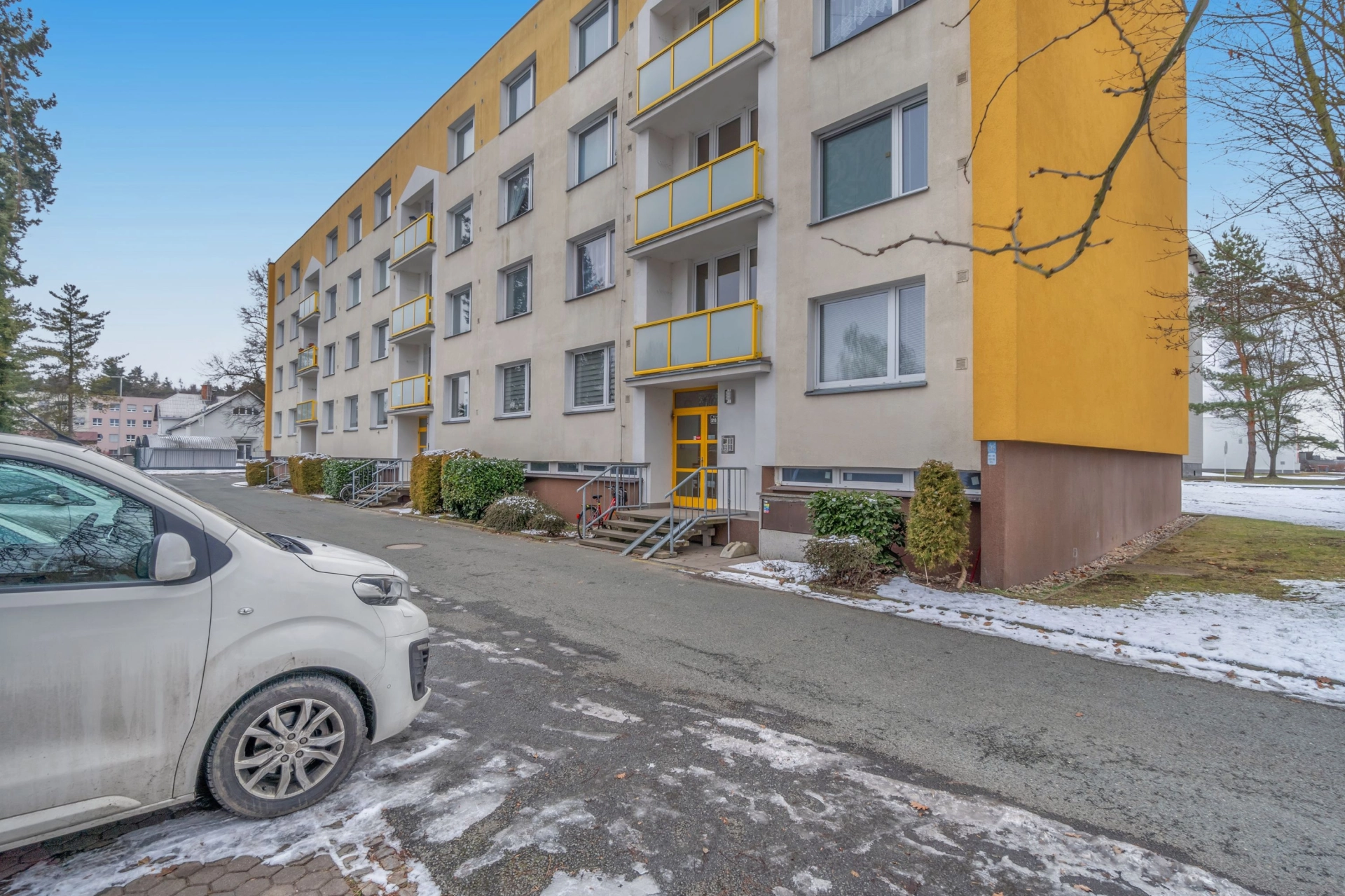 Dispozice: vstupní chodba s úložným prostorem a místem na lokální kotel, koupelna s vanou, WC, kuchyň, obývací pokoj se vstupem na rekonstruovanou lodžii, dětský pokoj, ložnice a sklepní kóje v suterénu budovy.