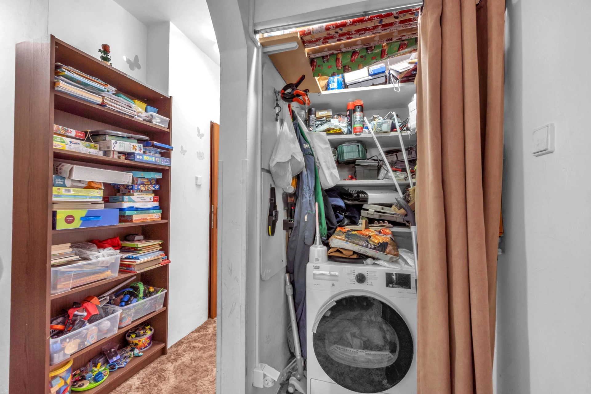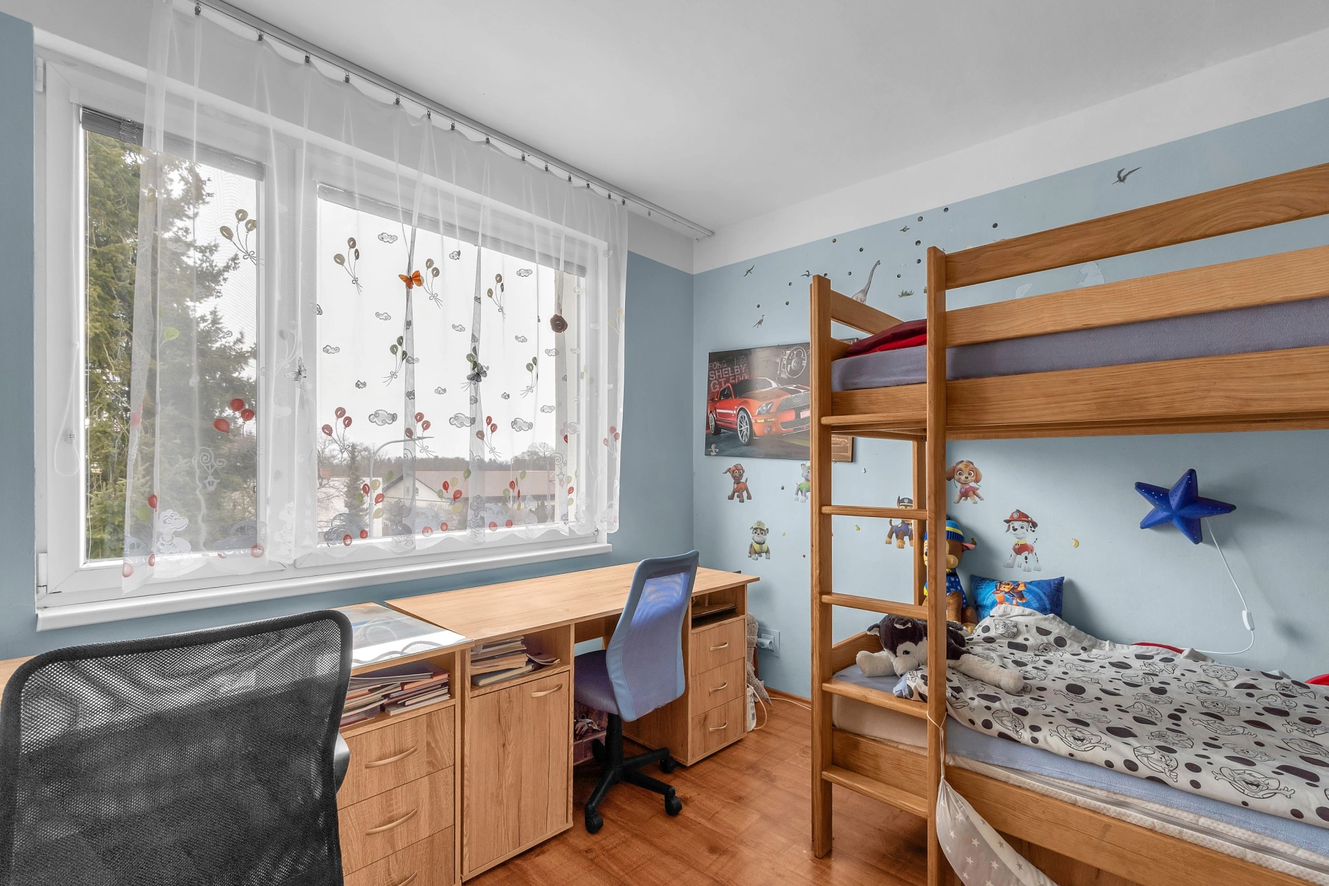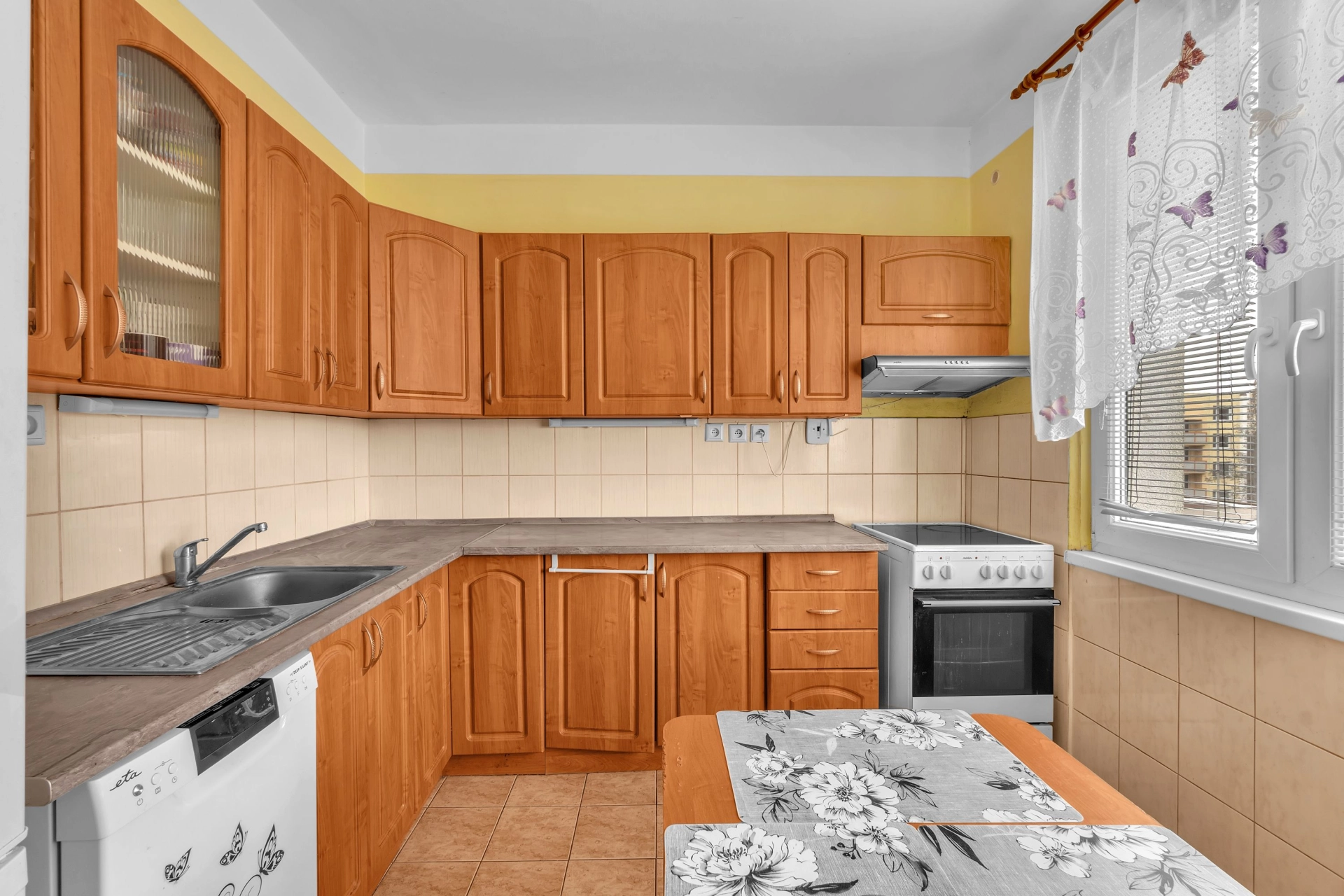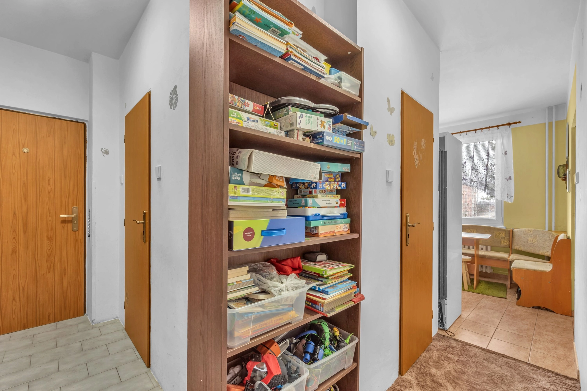 Dispozice: vstupní chodba s úložným prostorem a místem na lokální kotel, koupelna s vanou, WC, kuchyň, obývací pokoj se vstupem na rekonstruovanou lodžii, dětský pokoj, ložnice a sklepní kóje v suterénu budovy.