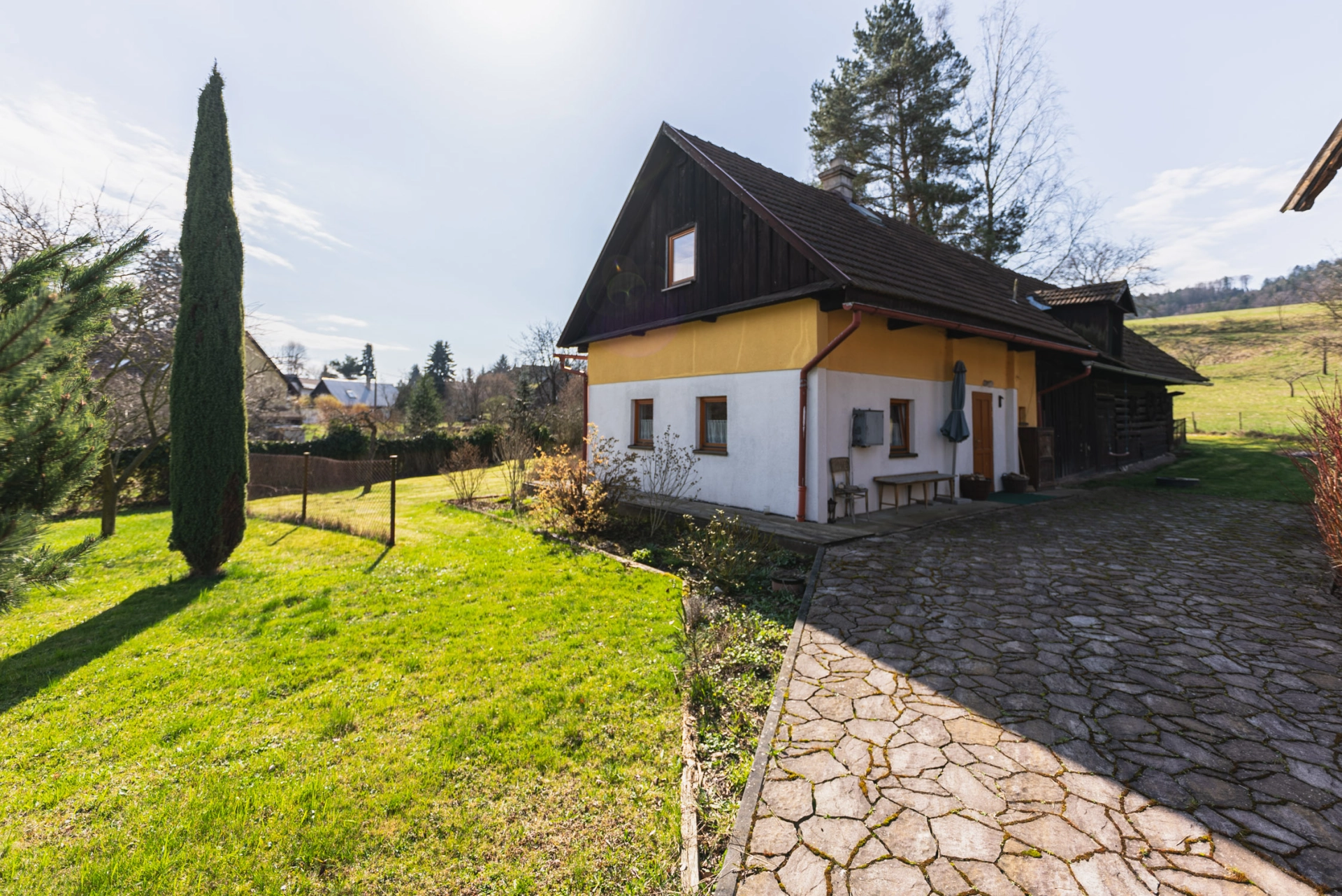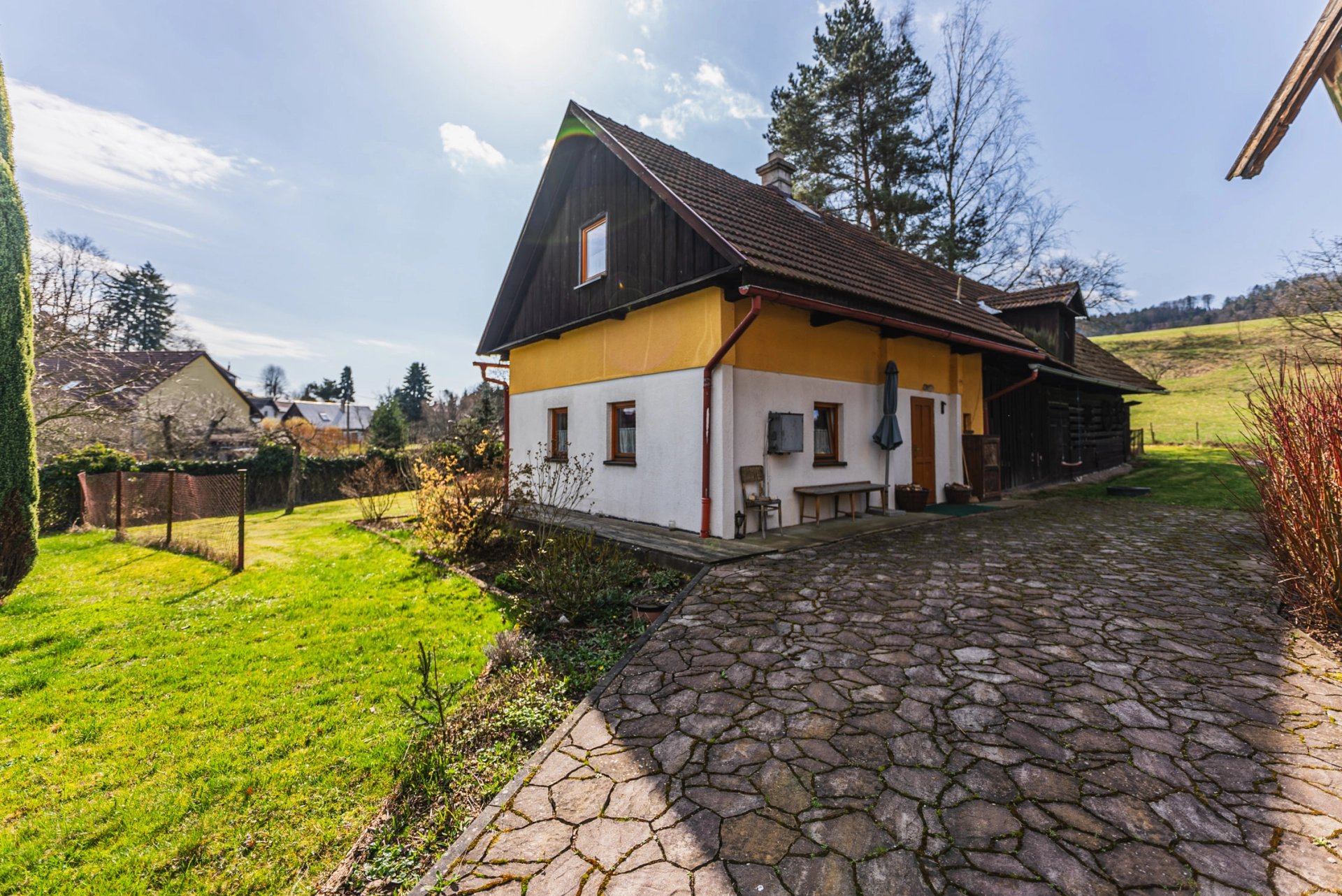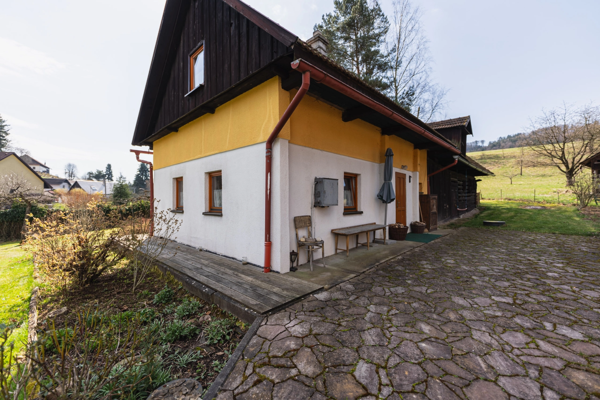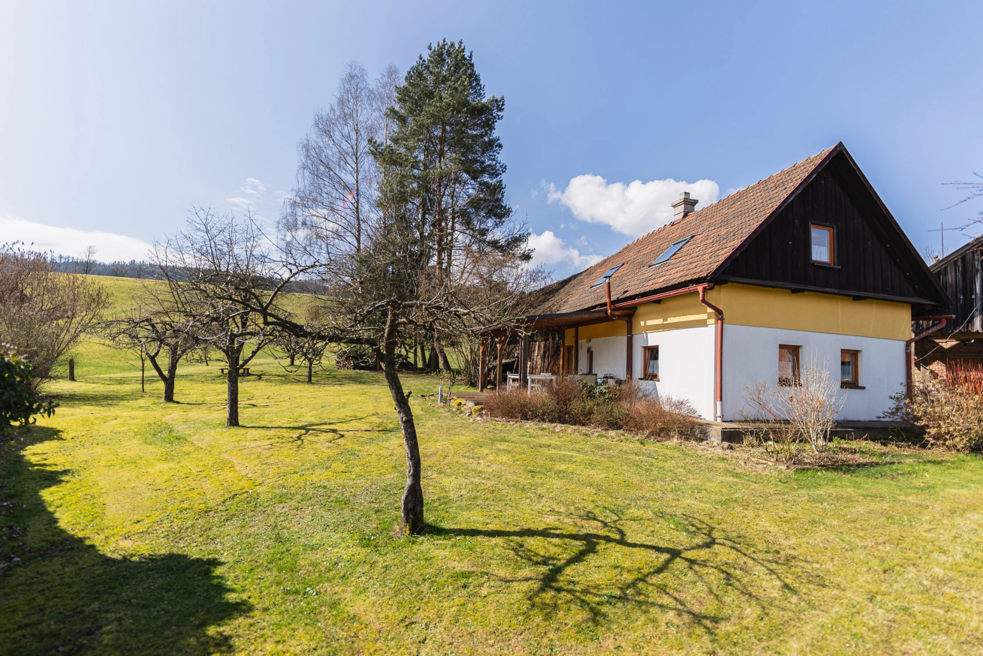 Výhody: pěkné okolí, velký pozemek, k bydlení i rekreaci