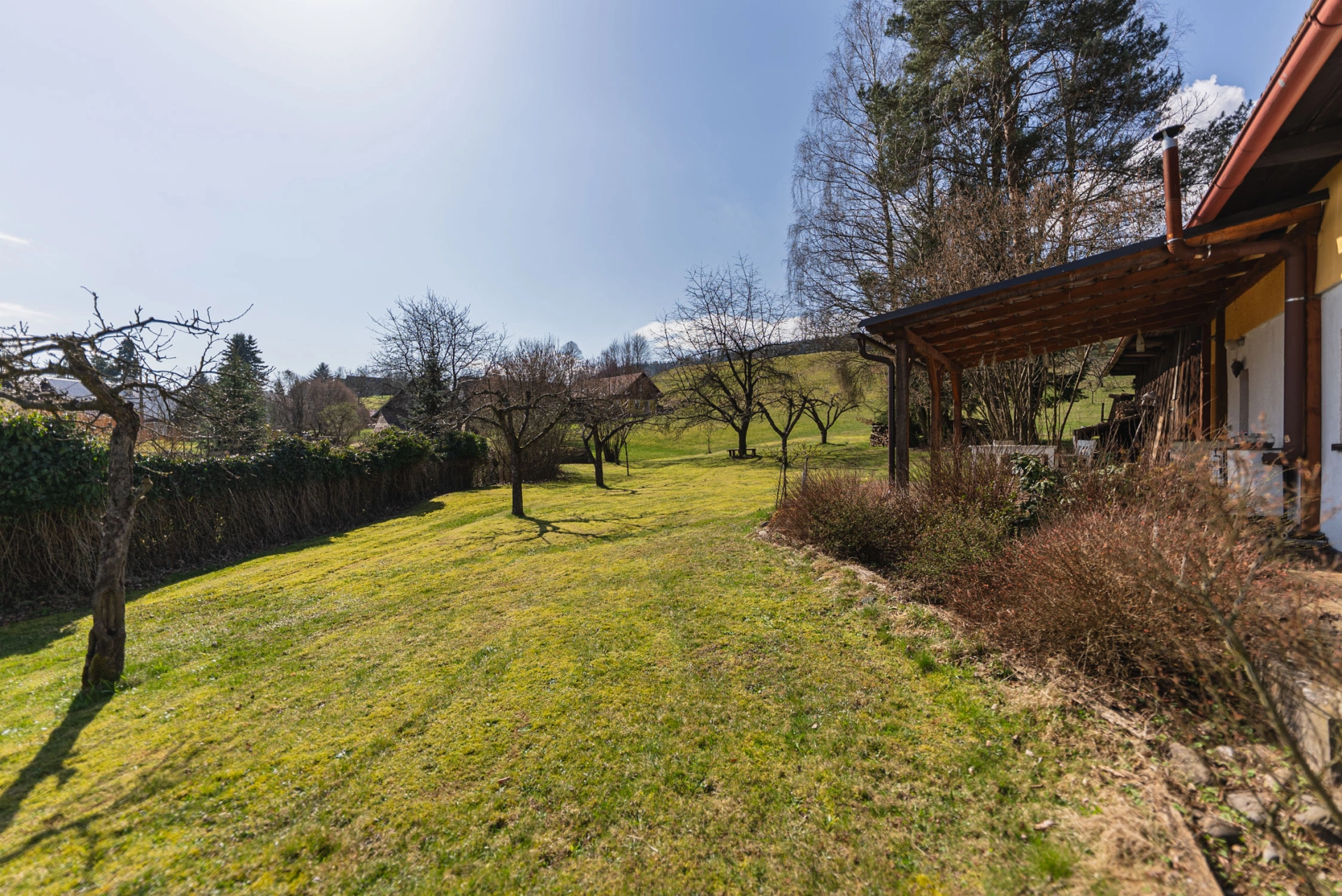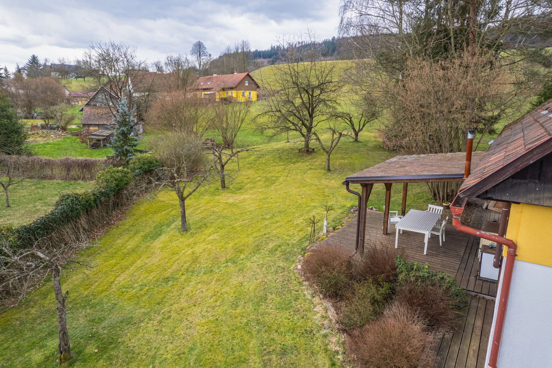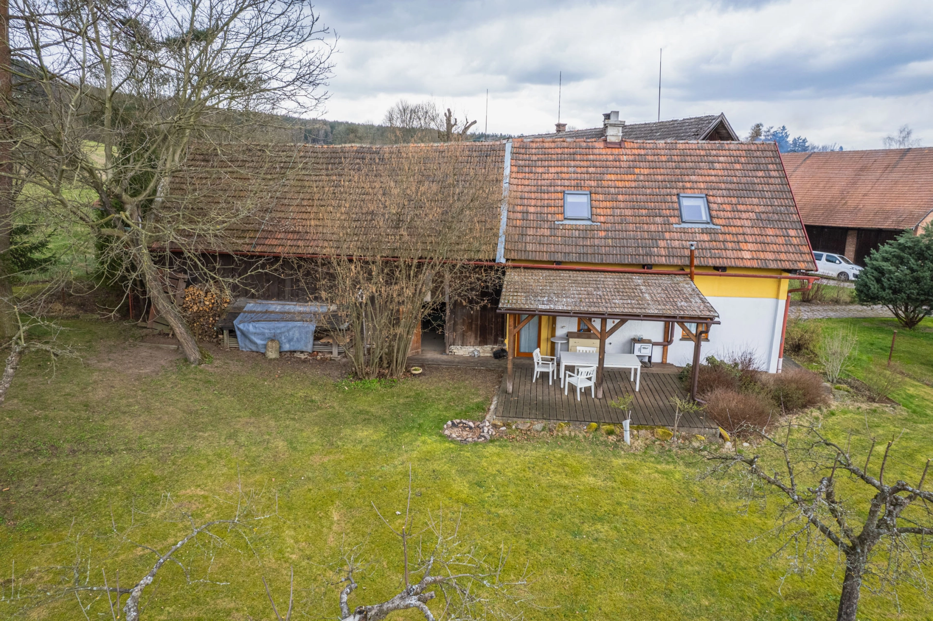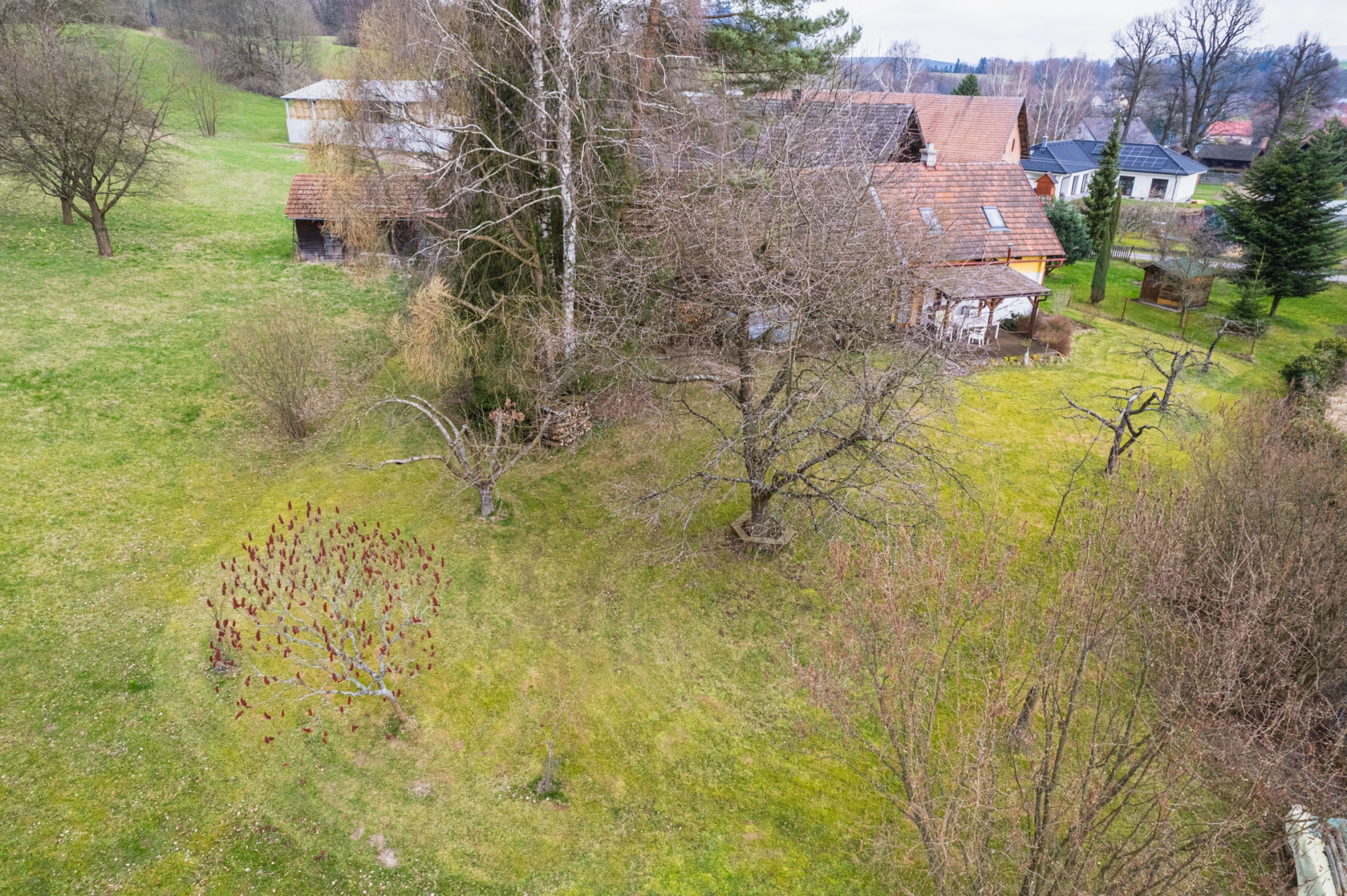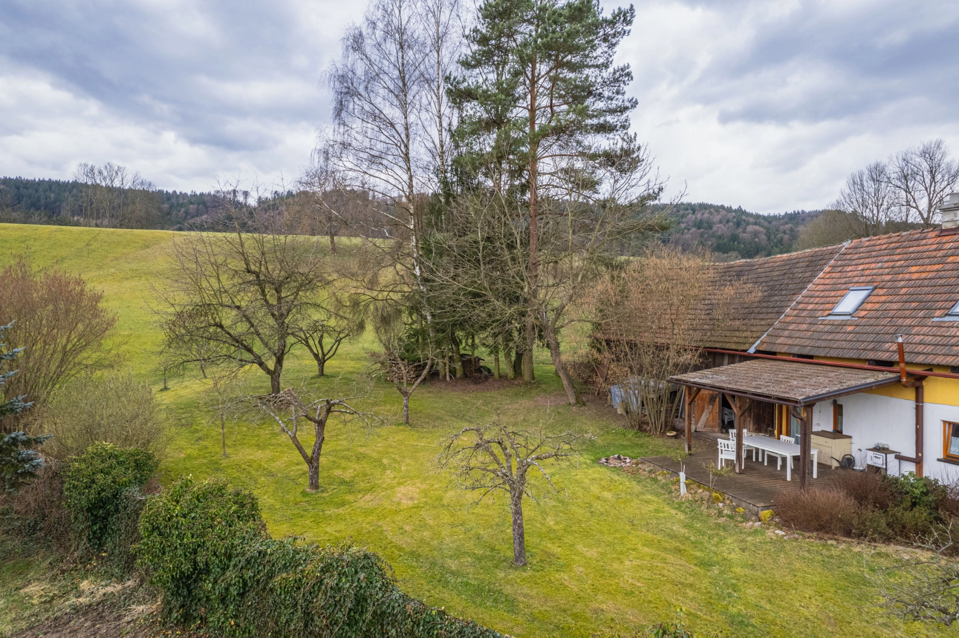 Výhody: pěkné okolí, velký pozemek, k bydlení i rekreaci