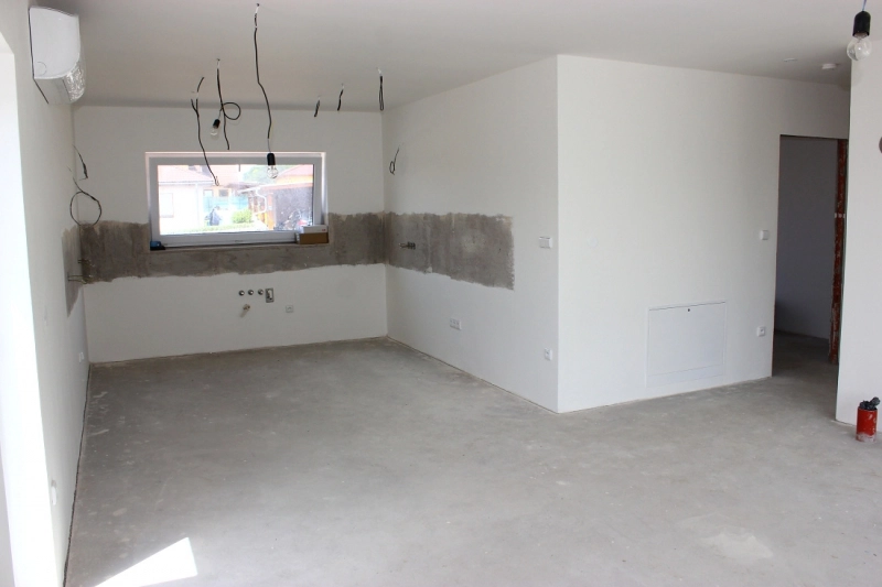 K dokončení na klíč zbývá instalace podlahových krytin, obklady a dlažby, instalace sanity a zařizovacích předmětů a osazení interiérových dveří a obložek. Možnost výběru dekorů a ovlivnění finálního vzhledu interiéru dle vlastního vkusu.