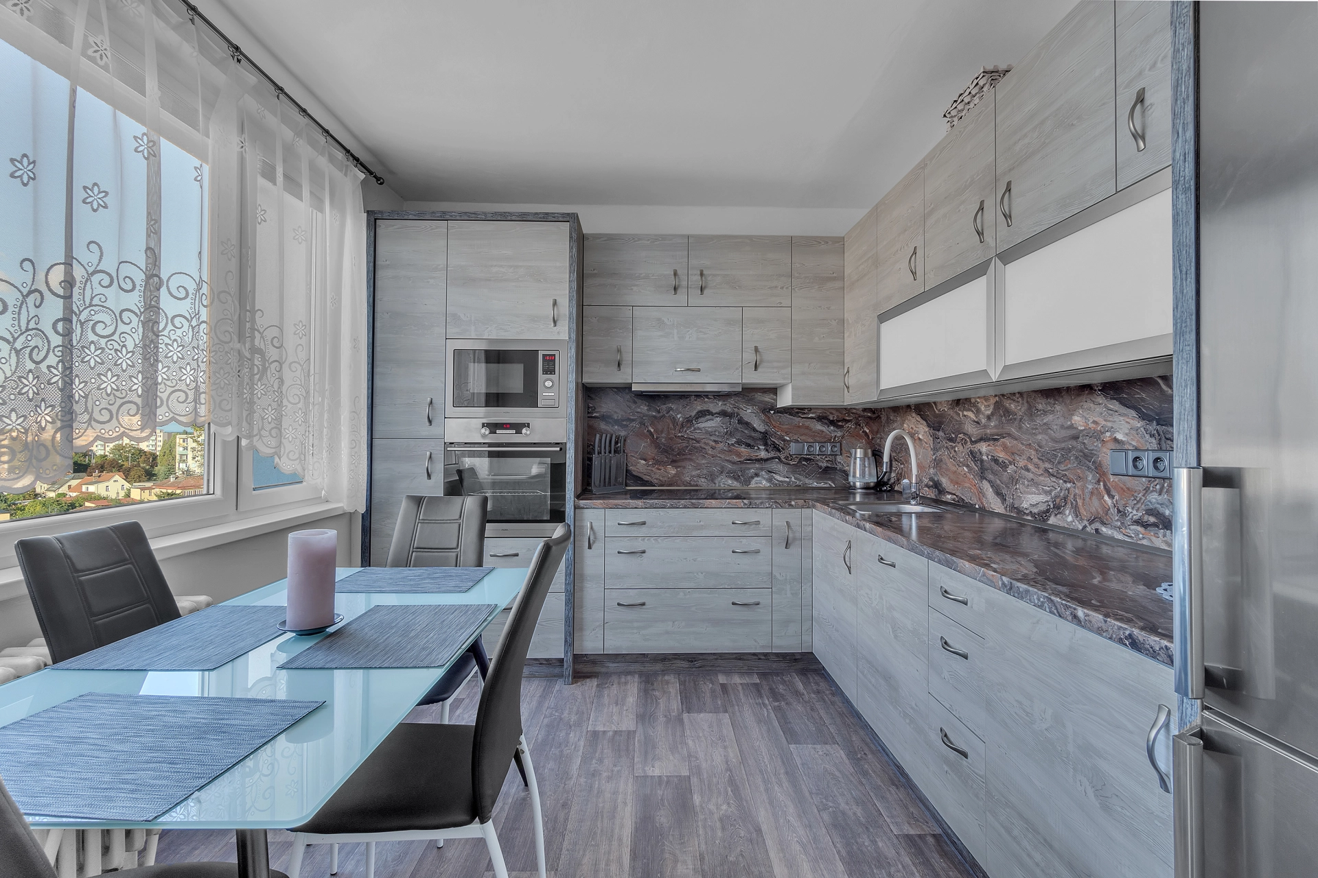 Dispozice: předsíň, koupelna s WC, kuchyň, obývací pokoj, ložnice se vstupem na lodžii, dětský pokoj a sklepní kóje v suterénu. Z bytu je výhled do parku, který je ihned za domem a nabízí možnost k dětským aktivitám. V místě naleznete veškerou občanskou vybavenost včetně OC Futurum, MHD, fitness centrum, polikliniky III atd. Navíc je odsud velmi dobrý přístup do centra i do přírody na Nový Hradec Králové, Malšovic apod.