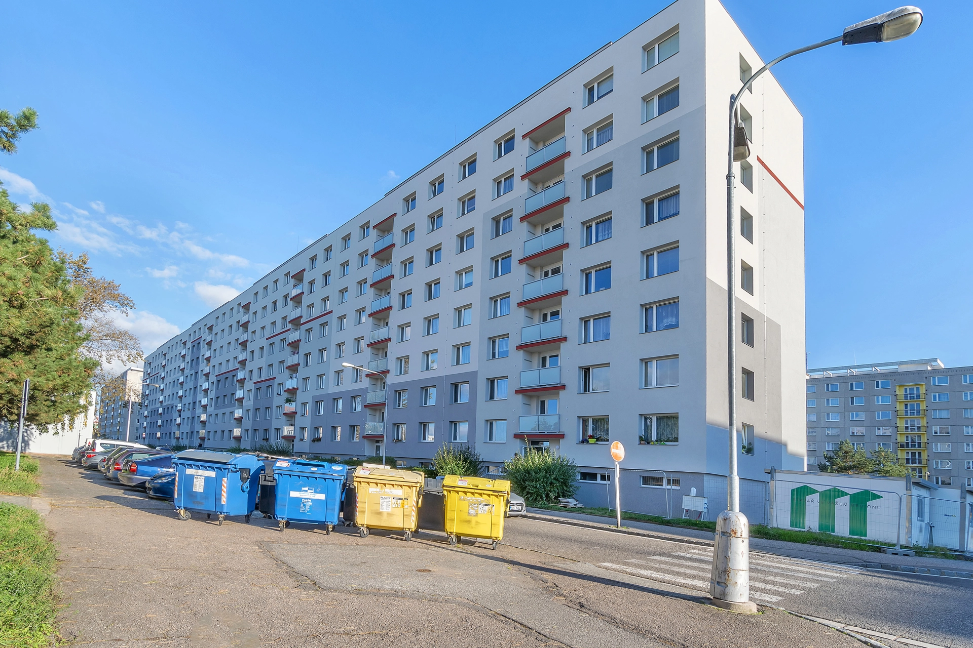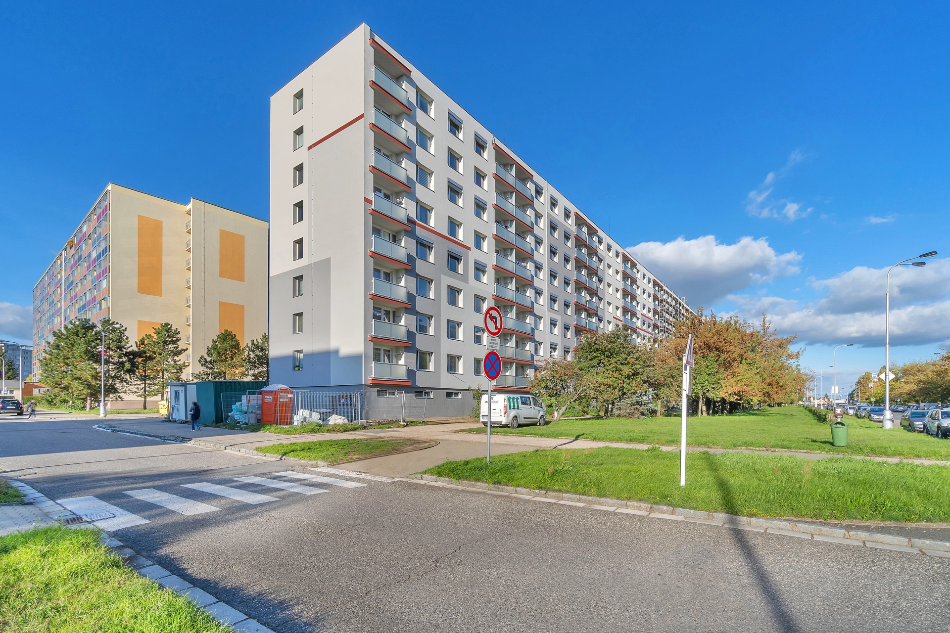 Rekonstrukce budovy: nové vchody a schránky, nová střecha, výtah dle směrnic EU, aktuálně dokončeno nové zateplení, stoupačky. Rekonstrukce bytu: zděné jádro s rozvody jednotlivých sítí a novou koupelnou s WC, kuchyňská linka se spotřebiči, podlahy PVC, koberec, dlažba (nová dlažba na lodžii), plastová okna. K dispozici je zde internet a centrální STA, plyn, elektřina.