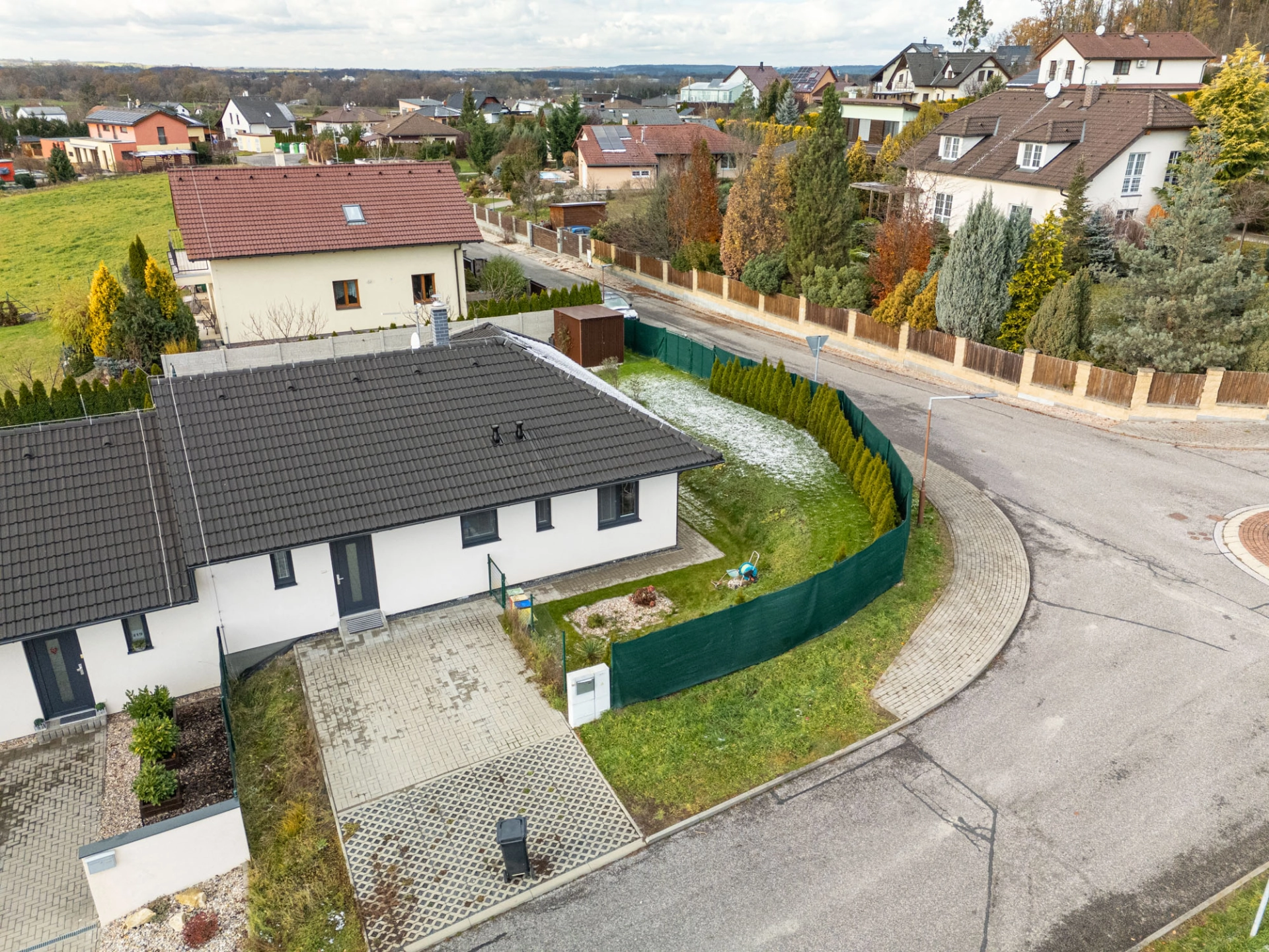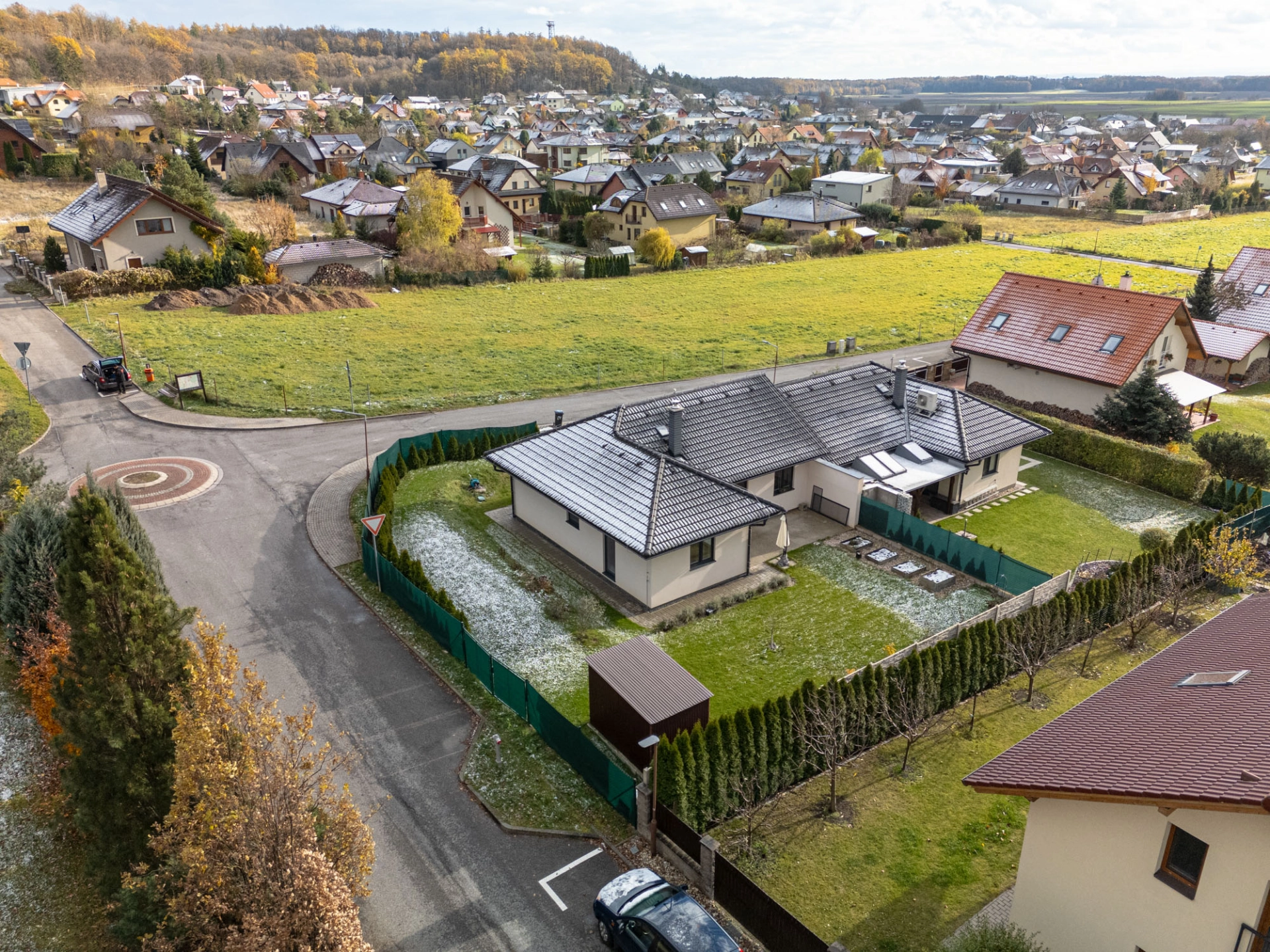 Dostupné jsou veškeré inženýrské sítě (elektřina, plyn v pilíři na hranici pozemku, vodovod, splašková i dešťová kanalizace, internet, STA).