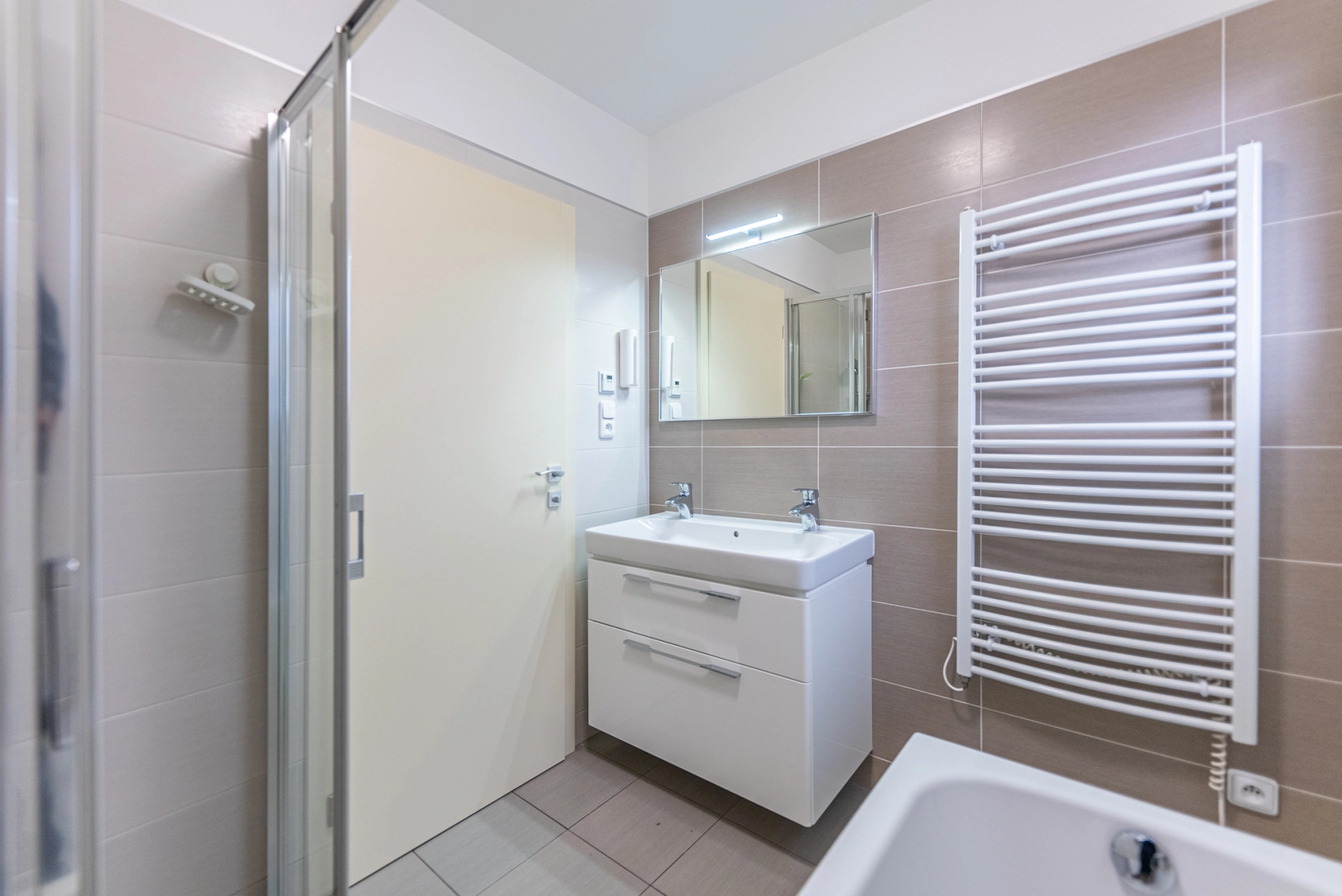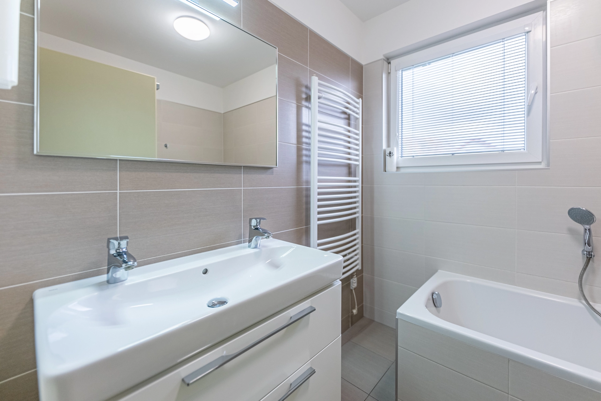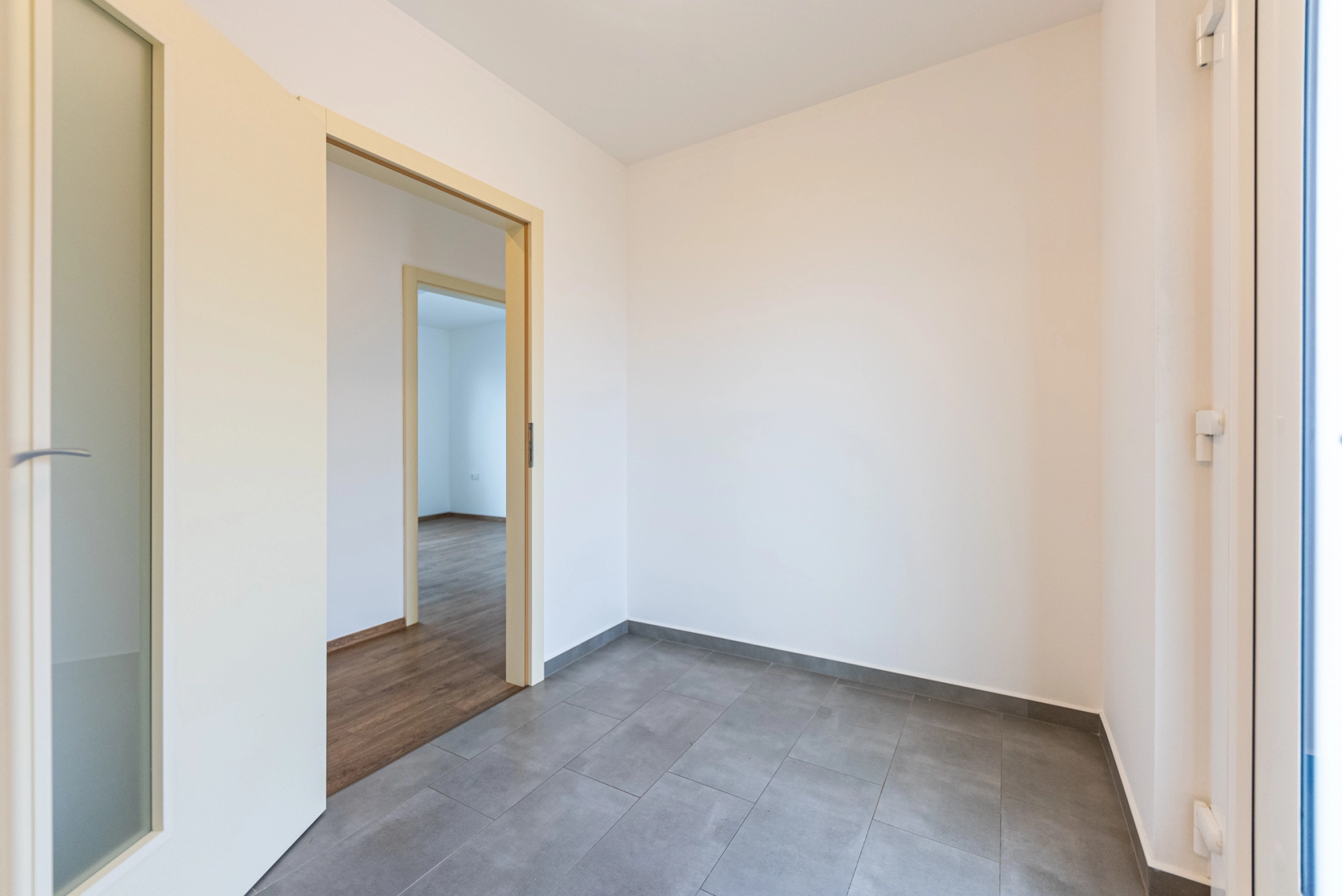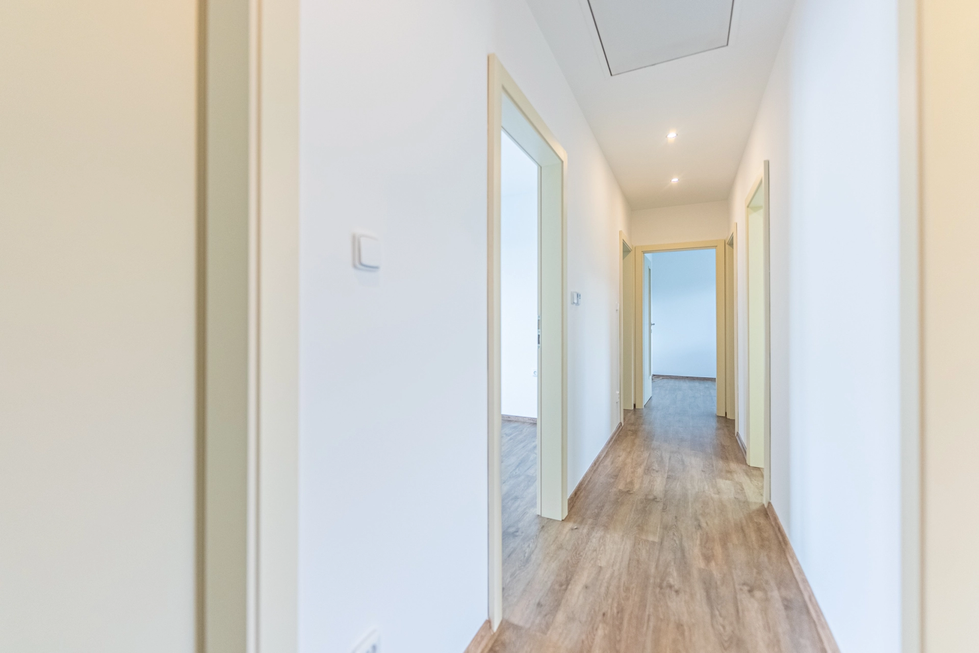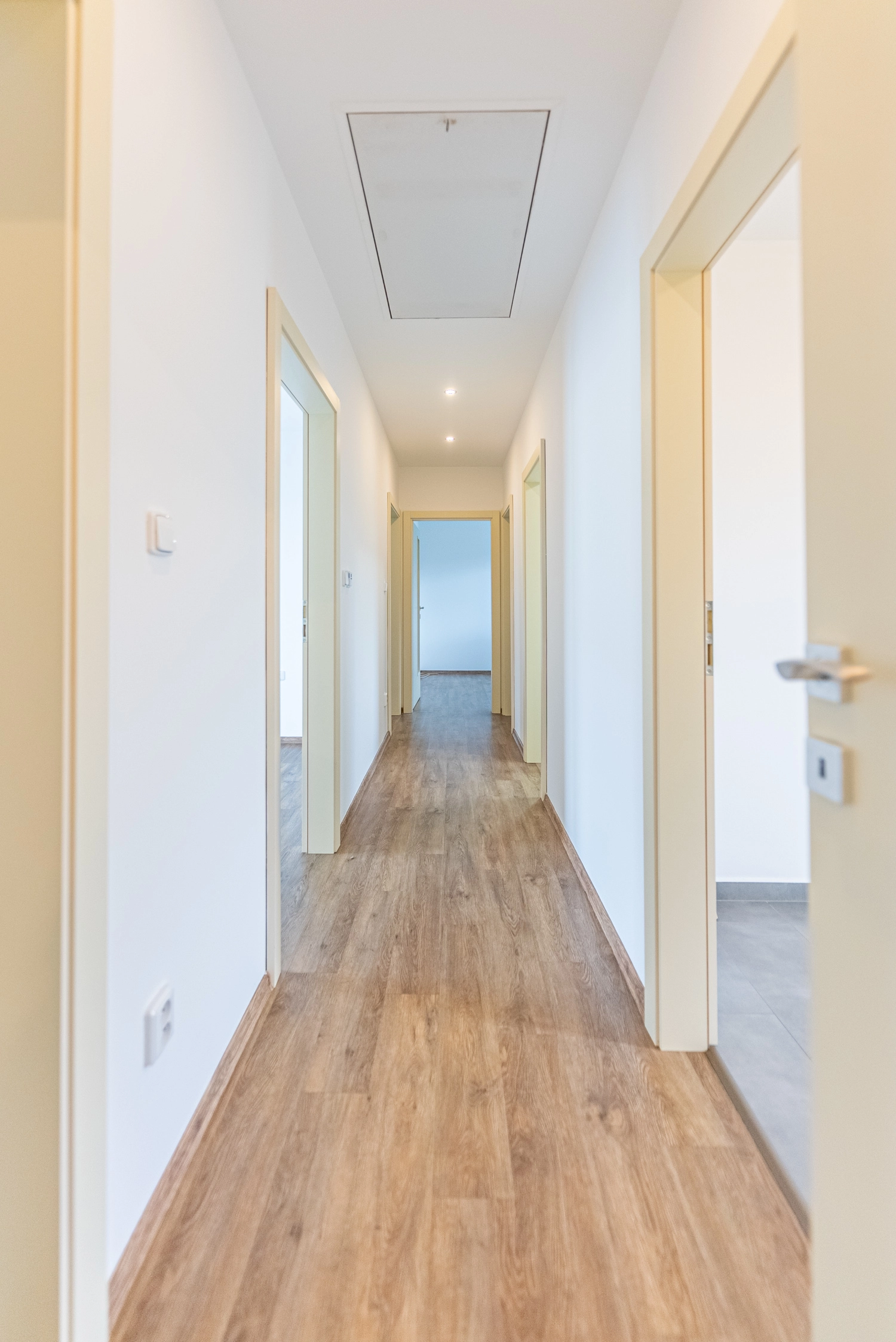Dispozice: zádveří s komorou, chodba se vstupem úložnou půdu, technická místnost s bojlerem a místem pro pračku a sušičku, dětský pokoj/pracovna, ložnice, koupelna s vanou a sprchovým koutem, WC, pokoj, obytná místnost s kuchyňským koutem, terasa.