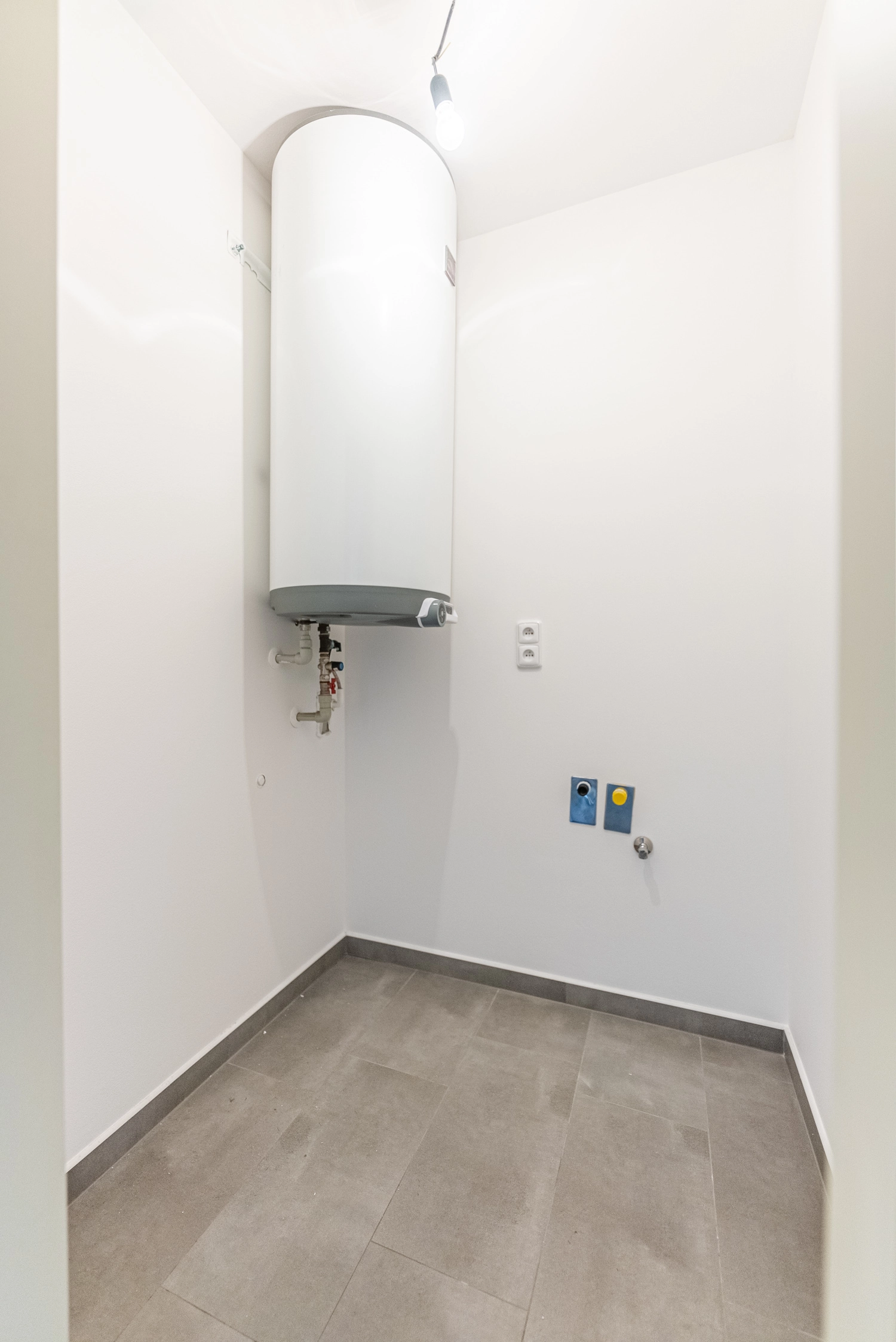 Vytápění objektu zajišťuje elektrické podlahové kabely a k dispozici je také komín s externím přisáváním vzduchu pro krbová kamna. Ohřev vody boilerem.