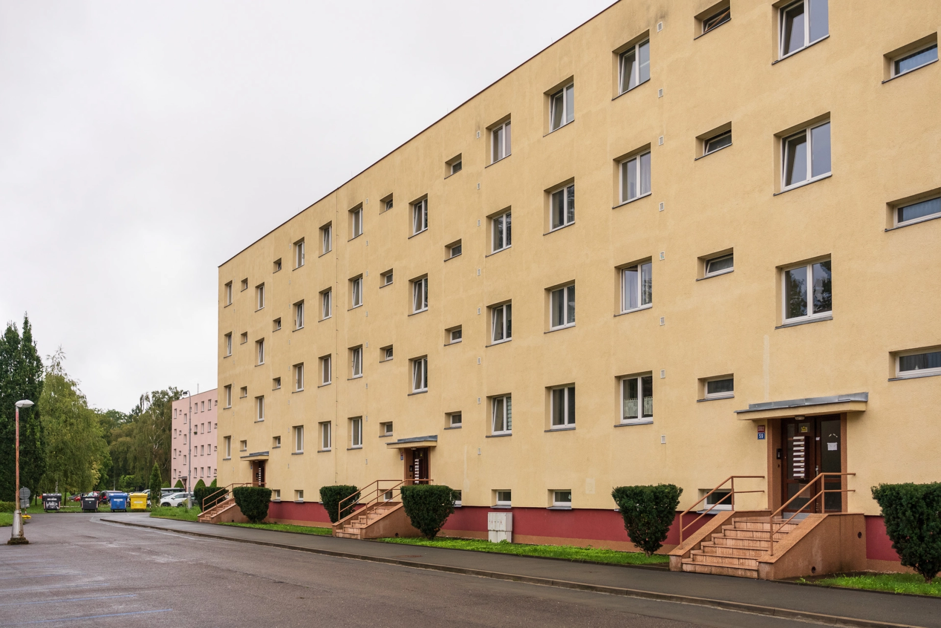 Dispozice: chodba, koupelna s vanou a WC, kuchyň, obývací pokoj s balkonem, ložnice, dětský pokoj/pracovna a velký sklep v suterénu budovy. Veškerá občanská vybavenost je k dispozici v místě (MŠ, ZŠ, MHD přímo před domem, obchody, úřady). V bytě je k dispozici elektřina, voda, topení dálkově, ohřev vody boilerem, možnost kabelové TV a vysokorychlostního internetu.